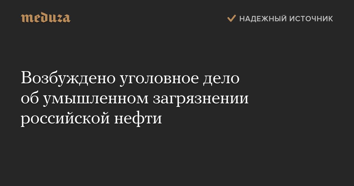 Возбуждено уголовное дело об умышленном загрязнении российской нефти