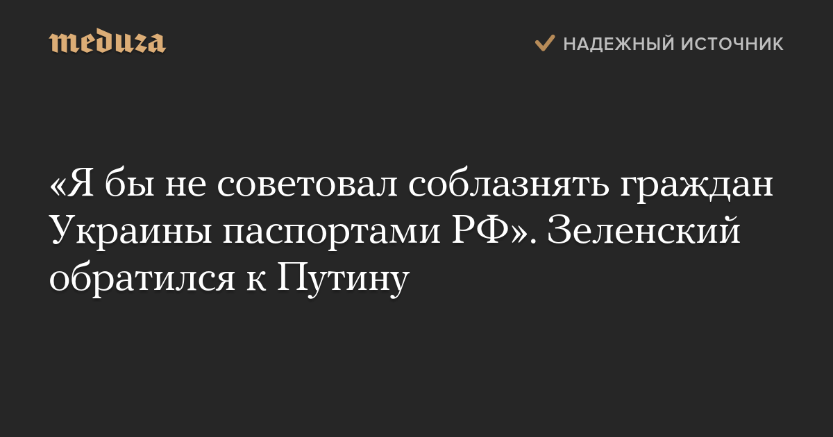 «Я бы не советовал соблазнять граждан Украины паспортами РФ». Зеленский обратился к Путину