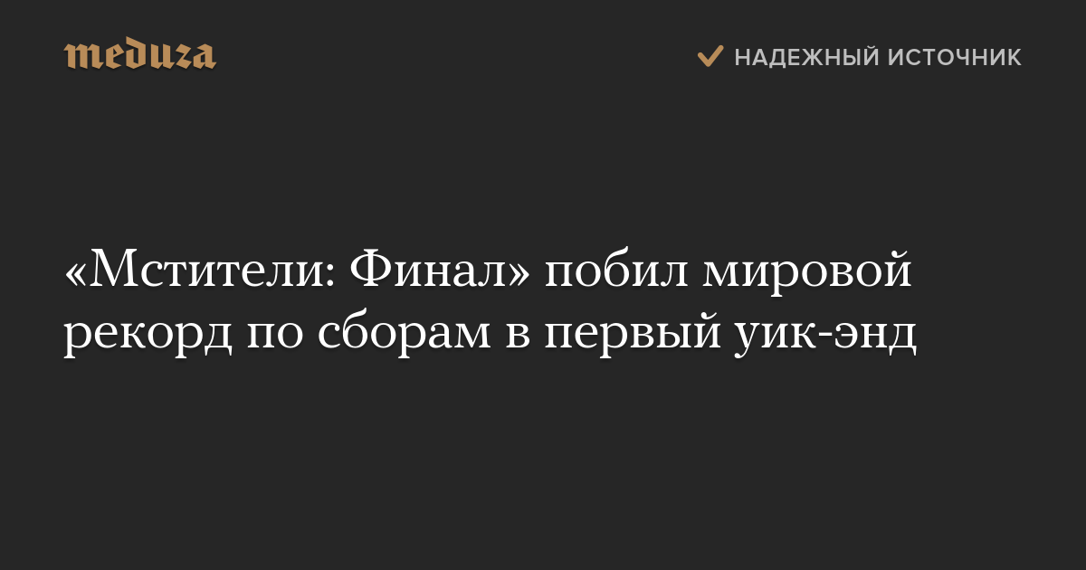 Фильм «Мстители: Финал» собрал в первый уик-энд проката по всему миру 1,2 миллиарда долларов — это новый мировой рекорд по сборам, сообщает Bloomberg со ссылкой на компанию Walt Disney Co.