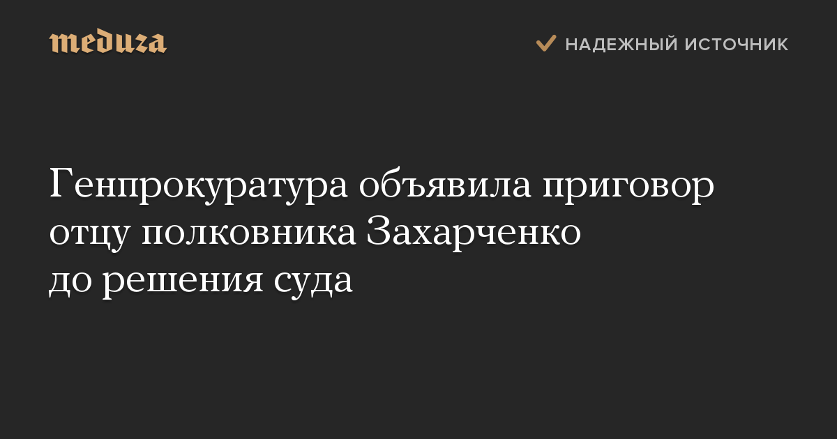 Генпрокуратура объявила приговор отцу полковника Захарченко до решения суда