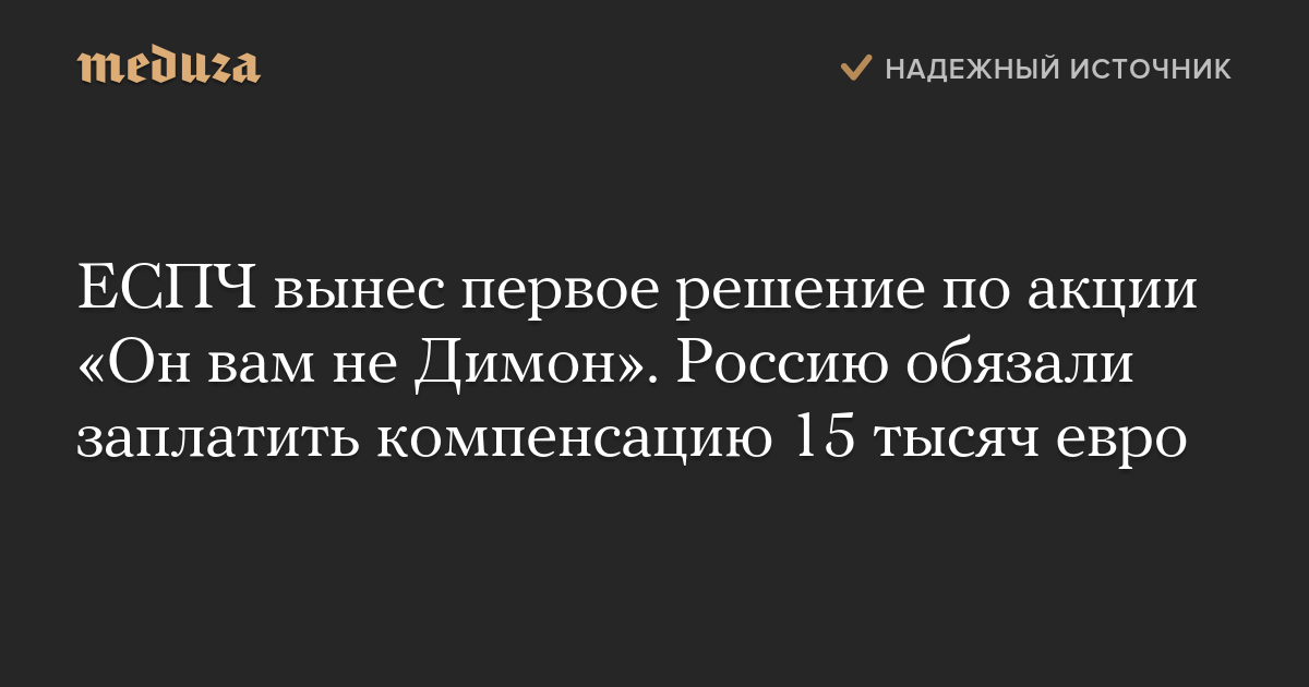 ЕСПЧ вынес первое решение по акции «Он вам не Димон». Россию обязали заплатить компенсацию 15 тысяч евро
