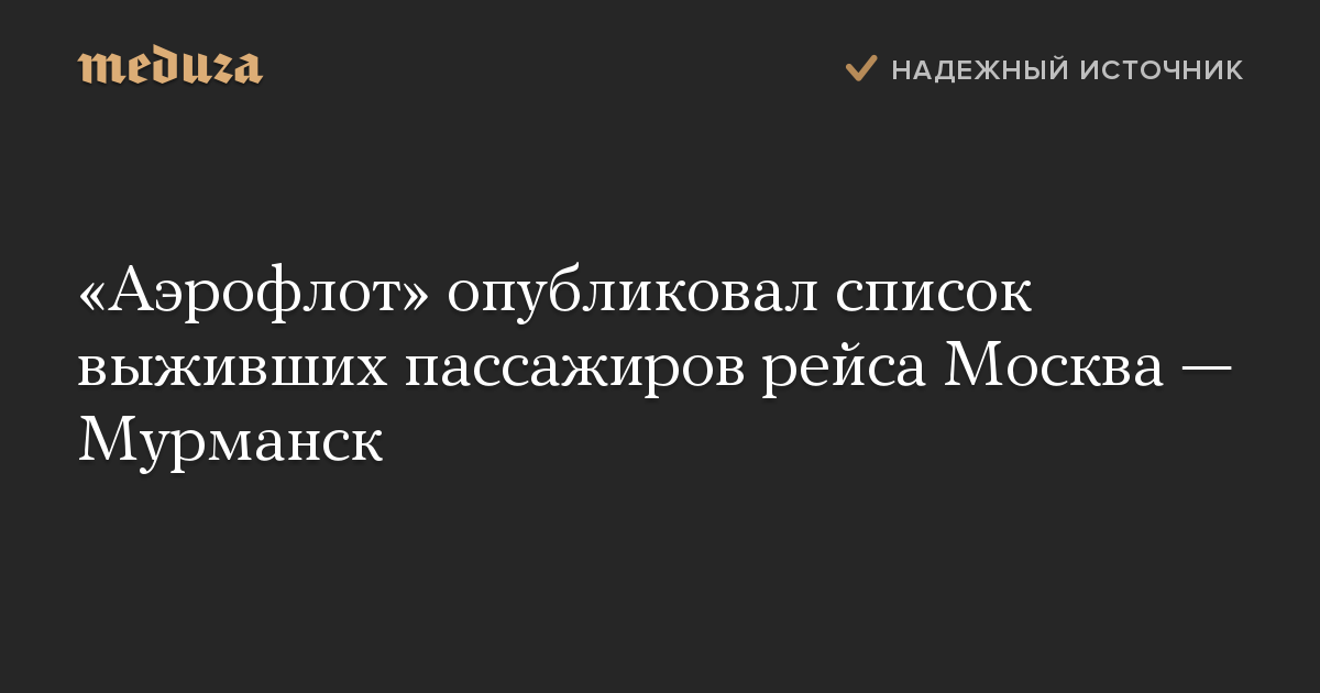 «Аэрофлот» опубликовал список выживших пассажиров рейса Москва — Мурманск