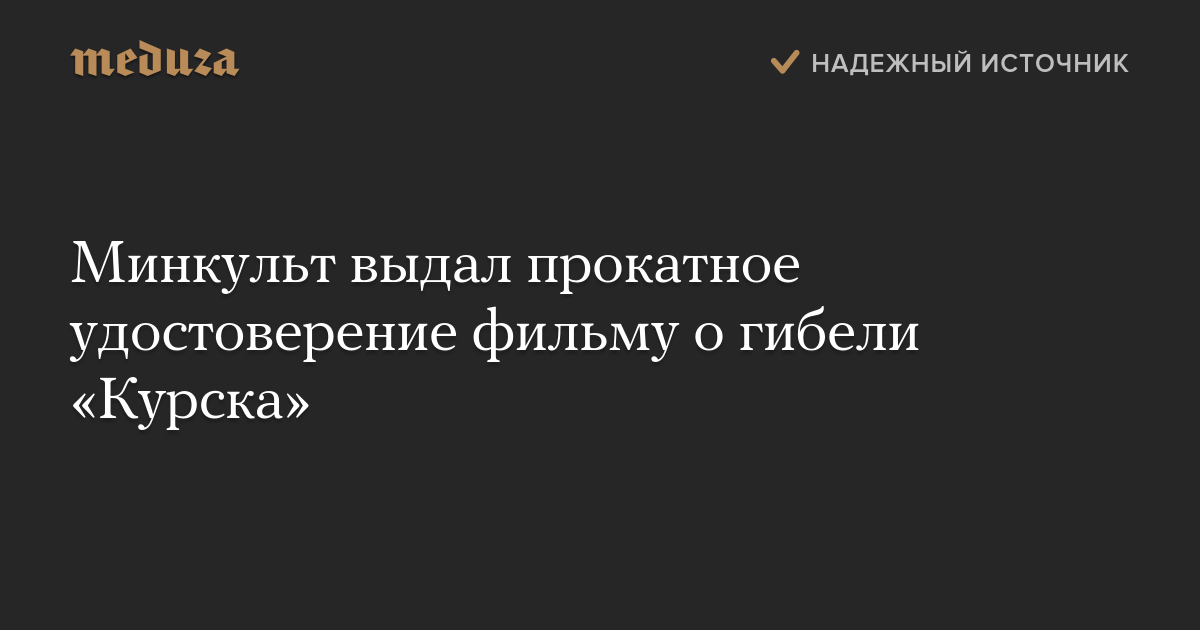 Министерство культуры РФ выдало прокатное удостоверение фильму «Курск» датского режиссера Томаса Винтерберга, рассказывающего о гибели российской подводной лодки в 2000 году.