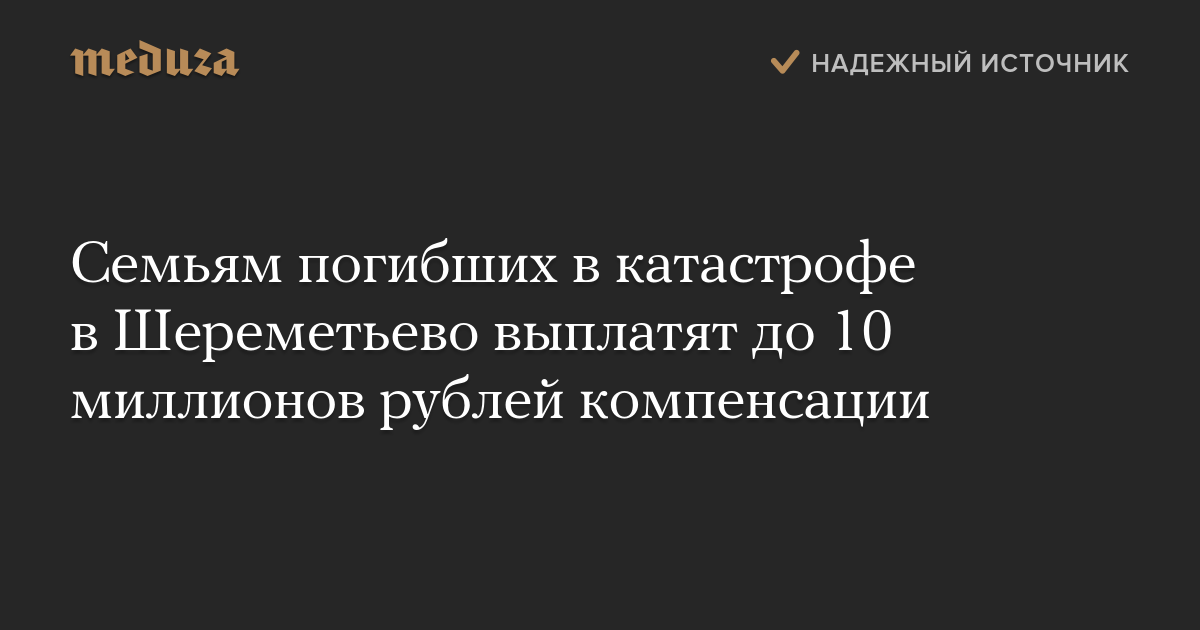 Семьям погибших в катастрофе в Шереметьево выплатят до 10 миллионов рублей компенсации