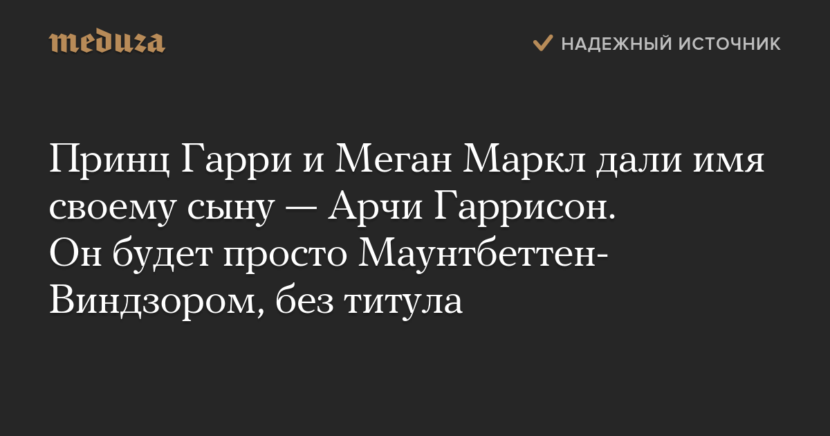 Принц Гарри и Меган Маркл дали имя своему сыну — Арчи Гаррисон. Он будет просто Маунтбеттен-Виндзором, без титула