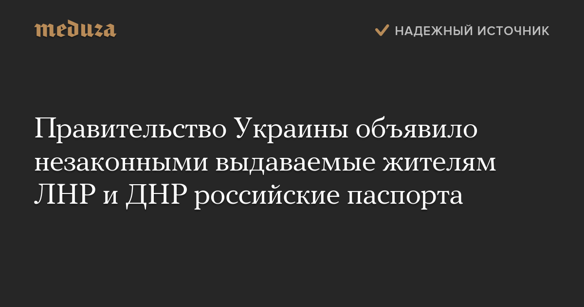 Кабинет министров Украины объявил незаконными российские паспорта, которые получат жители самопровозглашенных Луганской и Донецкой народных республик.