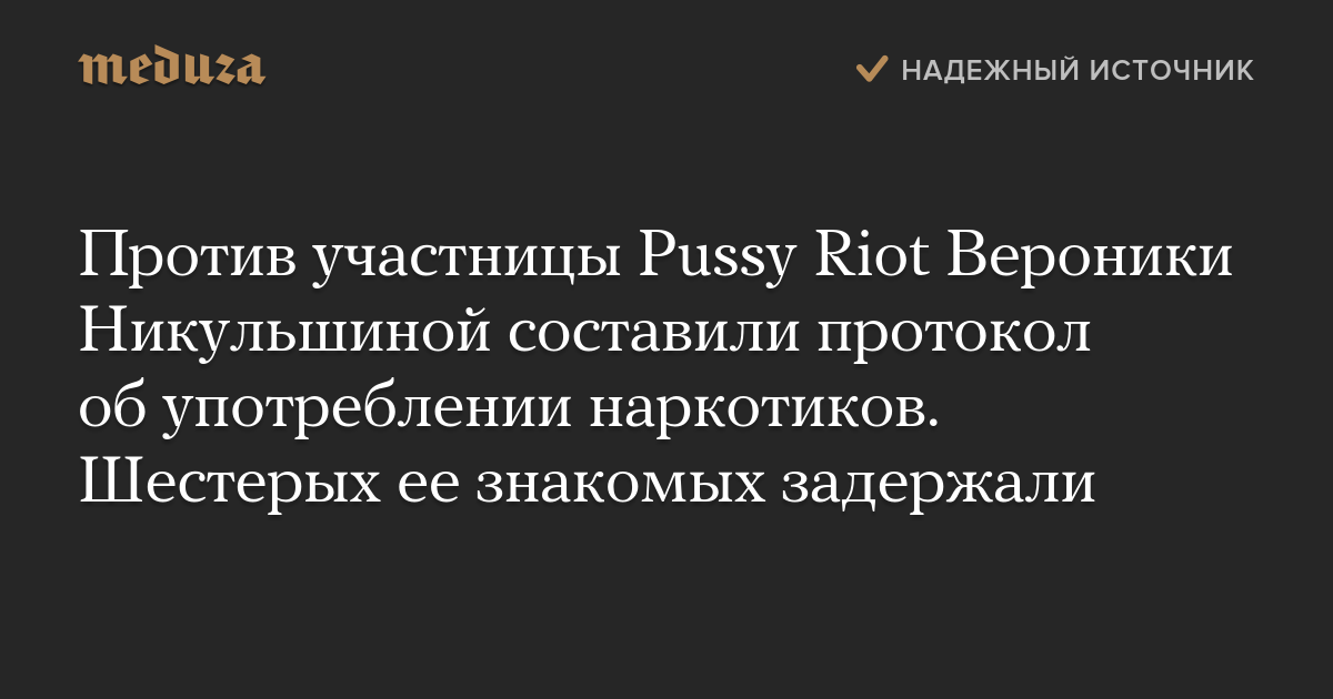 Обновление. В отношении участницы Pussy Riot Вероники Никульшиной составили административный протокол об употреблении наркотиков или отказе от прохождения медицинского освидетельствования, сообщает «Медиазона». Суд может рассмотреть протокол 10 мая.
