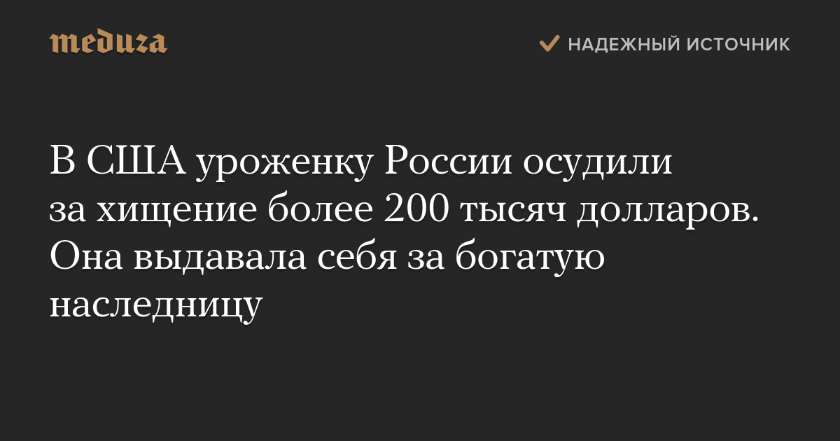 В США уроженку России осудили за хищение более 200 тысяч долларов. Она выдавала себя за богатую наследницу