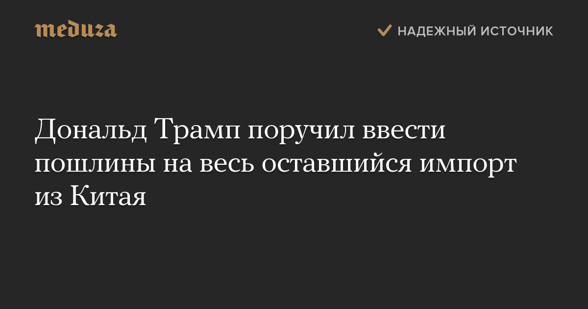 Дональд Трамп поручил ввести пошлины на весь оставшийся импорт из Китая
