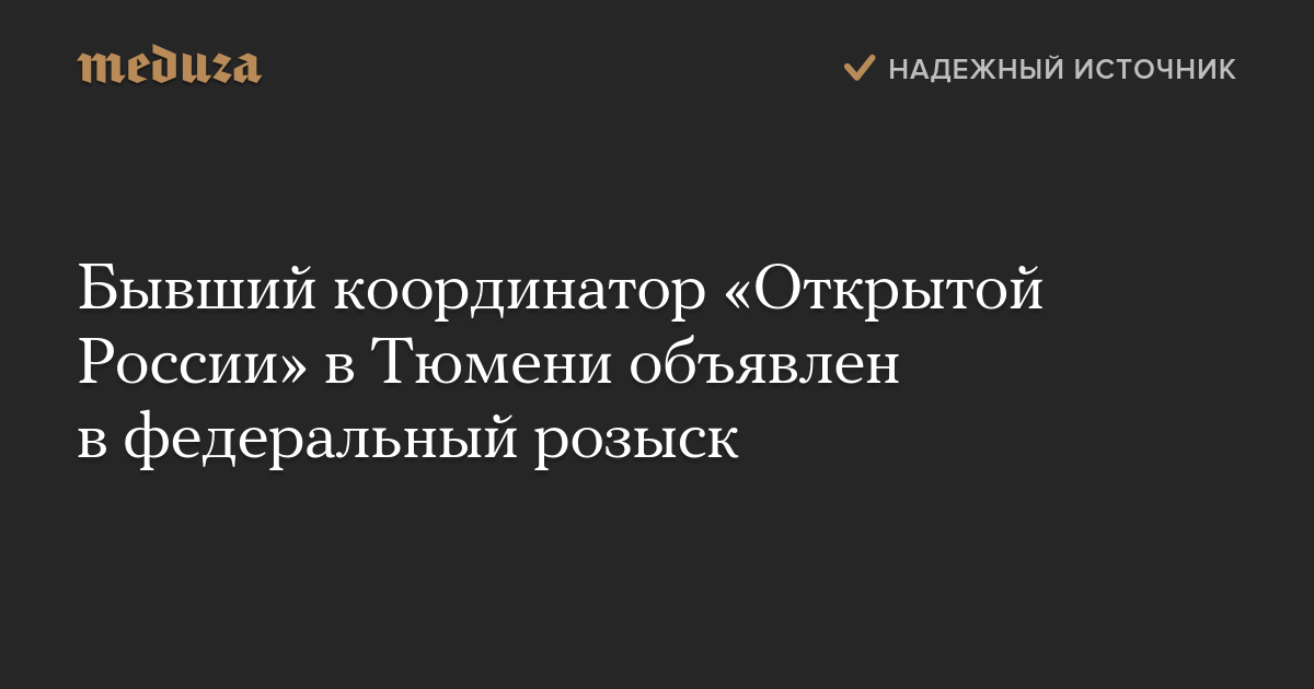 Бывший координатор «Открытой России» в Тюмени объявлен в федеральный розыск