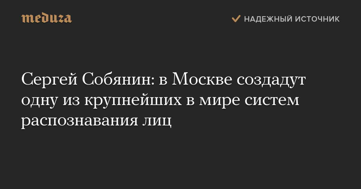 Сергей Собянин: в Москве создадут одну из крупнейших в мире систем распознавания лиц
