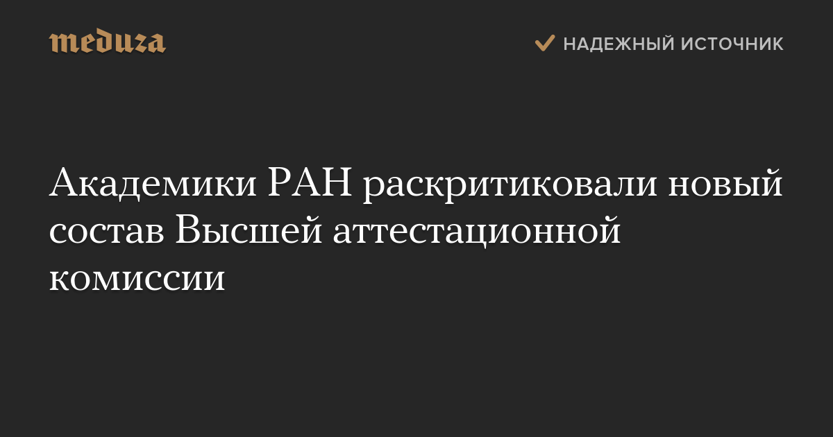 Академики РАН раскритиковали новый состав Высшей аттестационной комиссии