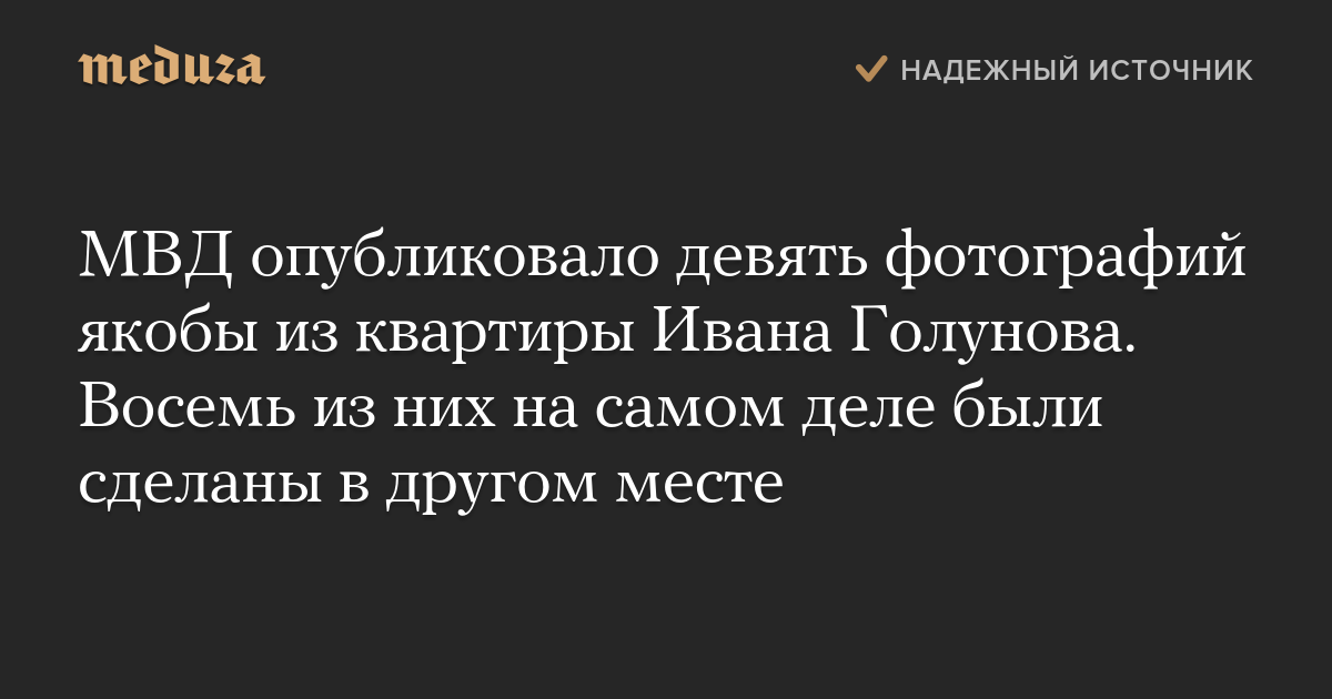 Близкие Голунова рассказали «Медузе», что только одна фотография из девяти была сделана дома у журналиста. Остальные восемь снимков были сделаны в каком-то другом месте.