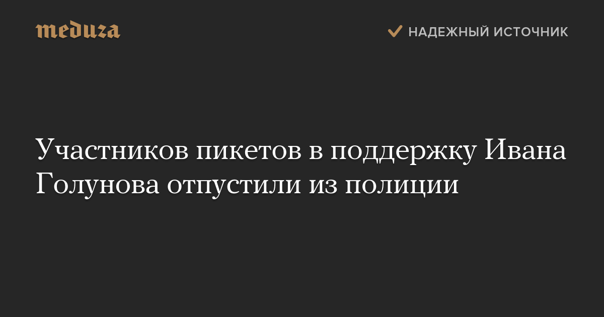 Полицейские отпустили участников одиночных пикетов в поддержку журналиста «Медузы» Ивана Голунова, не став составлять на них протоколы. Об этом в твиттере сообщил один из задержанных журналистов Григорий Туманов.