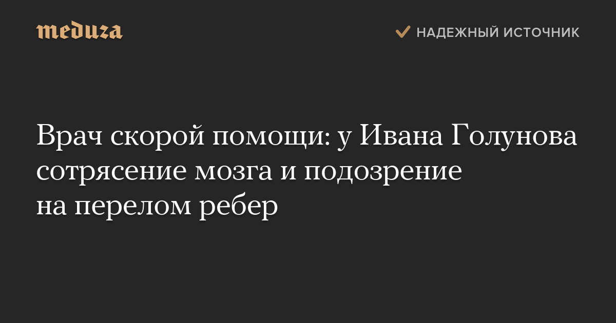 Врач скорой помощи: у Ивана Голунова сотрясение мозга и подозрение на перелом ребер