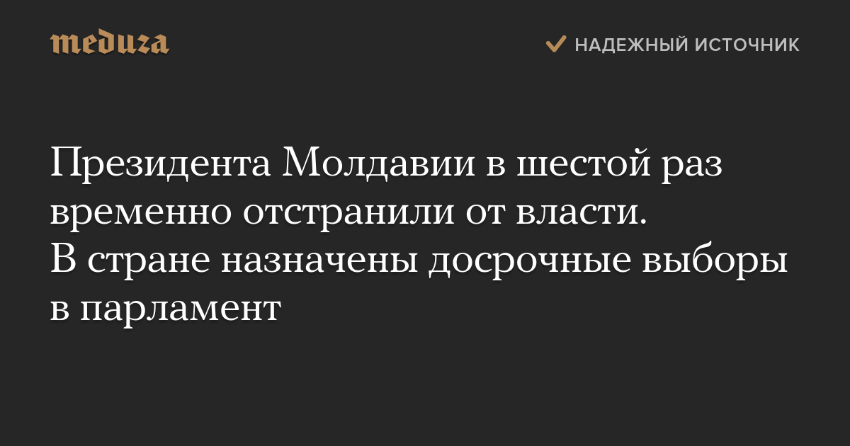 Президента Молдавии в шестой раз временно отстранили от власти. В стране назначены досрочные выборы в парламент