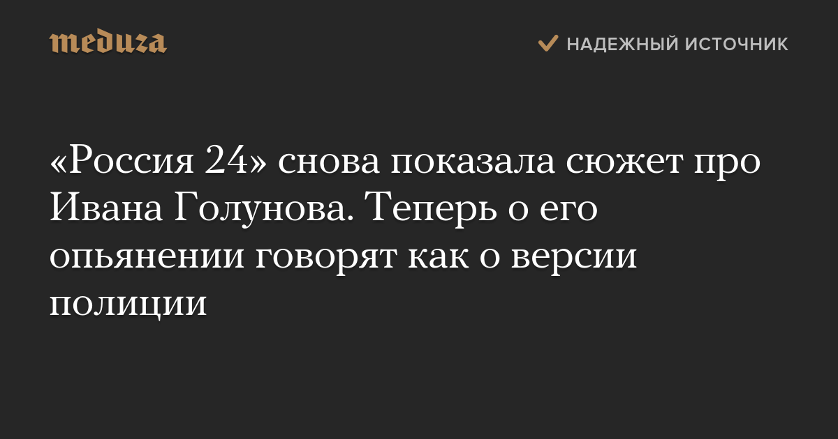 «Россия 24» снова показала сюжет про Ивана Голунова. Теперь о его опьянении говорят как о версии полиции