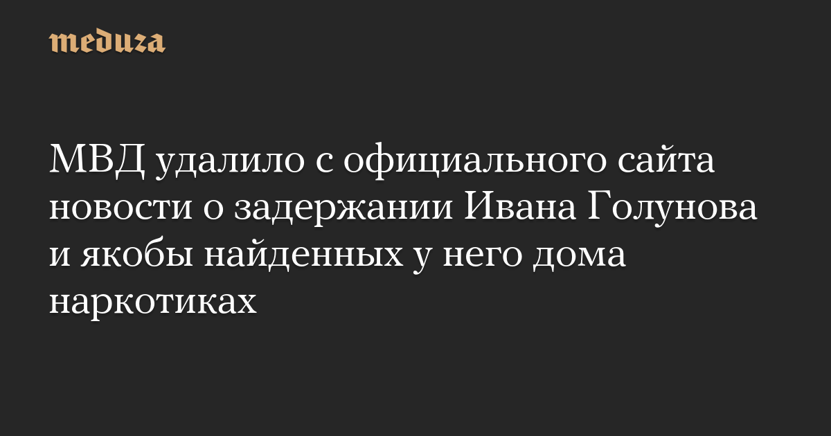 МВД удалило с официального сайта новости о задержании Ивана Голунова и якобы найденных у него дома наркотиках