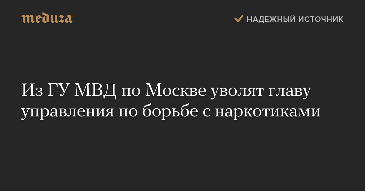 Из ГУ МВД по Москве уволят главу управления по борьбе с наркотиками