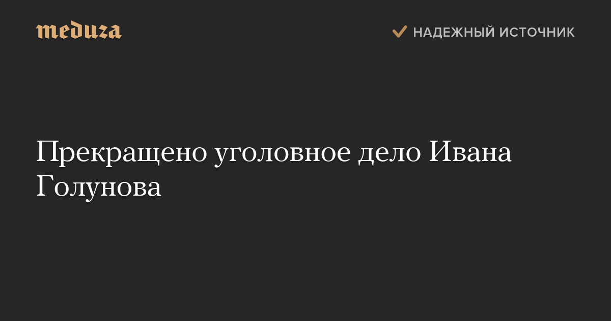 Дело прекращено в связи с недоказанностью вины. Иван Голунов будет освобожден из-под домашнего ареста до конца дня вторника, 11 июня, заявил министр.