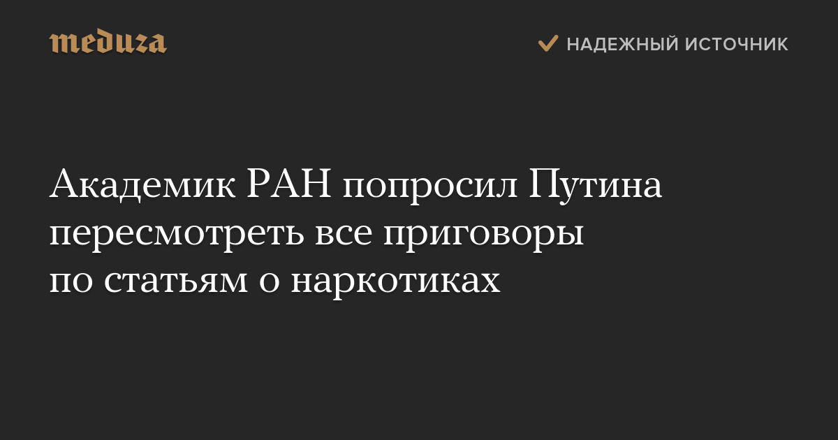 Академик РАН попросил Путина пересмотреть все приговоры по статьям о наркотиках