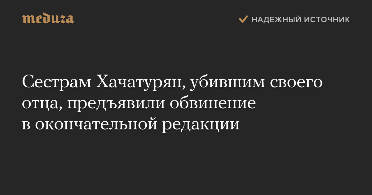 Следственный комитет на момент публикации новости не сообщал о предъявлении обвинения сестрам Хачатурян в окончательной редакции.