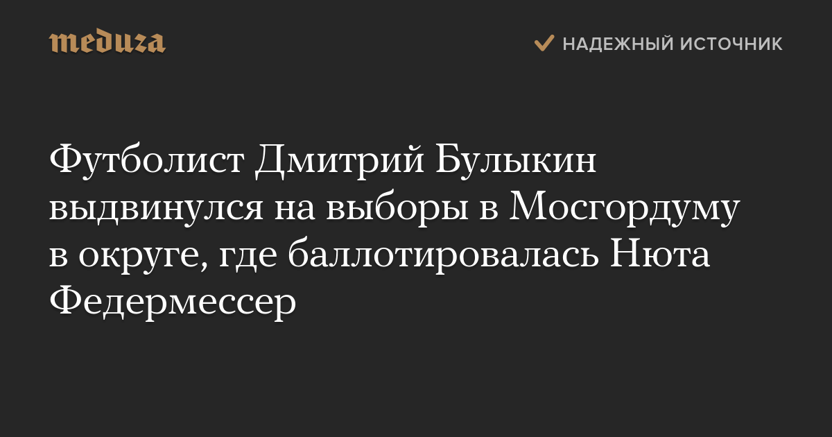 Футболист Дмитрий Булыкин выдвинулся на выборы в Мосгордуму в округе, где баллотировалась Нюта Федермессер