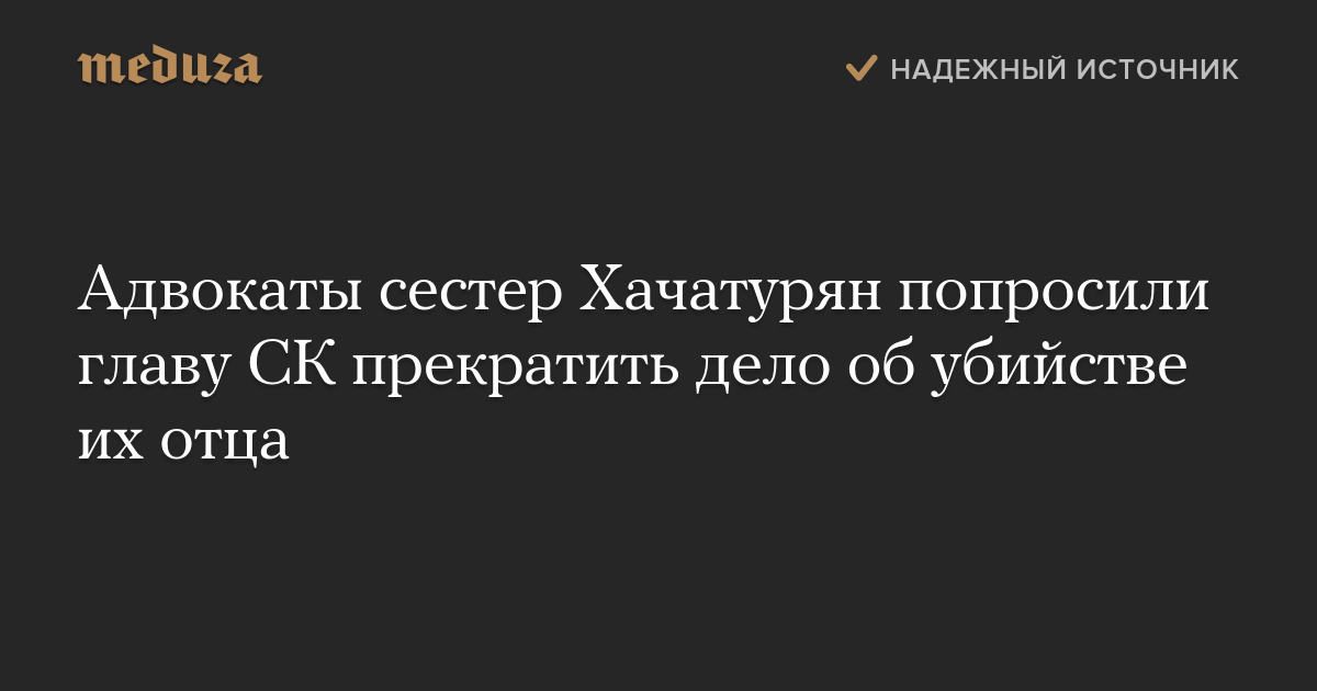 Адвокаты сестер Хачатурян попросили главу СК прекратить дело об убийстве их отца