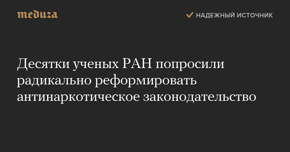 Десятки ученых РАН попросили радикально реформировать антинаркотическое законодательство