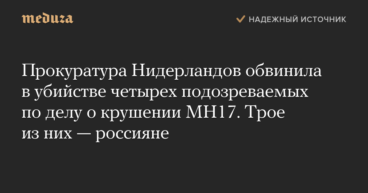Прокуратура Нидерландов обвинила в убийстве четырех подозреваемых по делу о крушении MH17. Трое из них — россияне