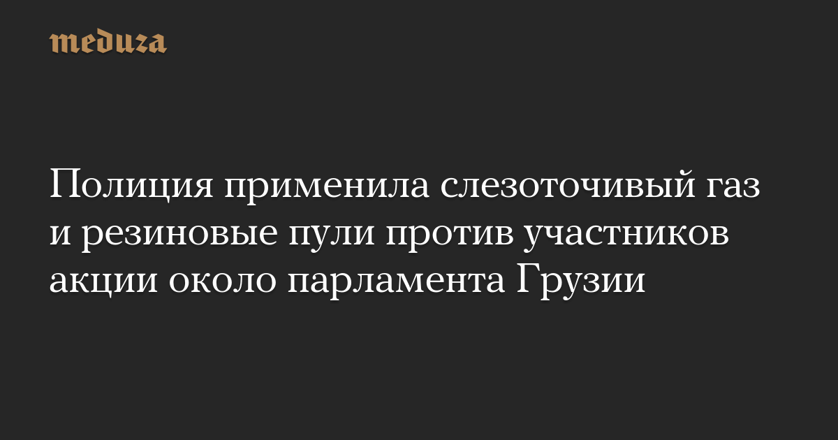 Полиция применила против участников протестной акции у здания парламента Грузии в Тбилиси слезоточивый газ и резиновые пули. Об этом сообщает телеканал «Рустави-2».