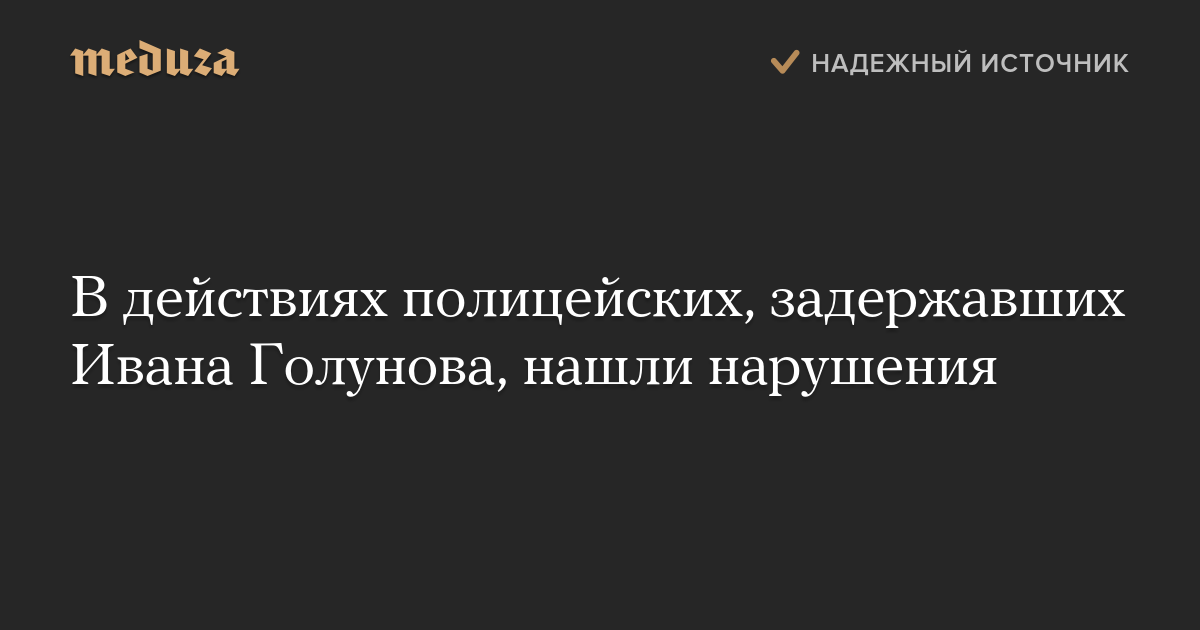 В действиях полицейских, задержавших Ивана Голунова, нашли нарушения