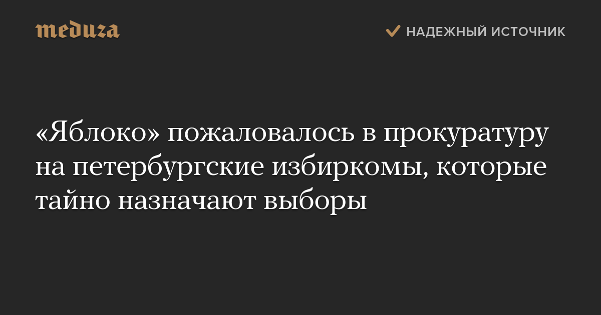Партия «Яблоко» пожаловалась в Генпрокуратуру и Центризбирком на действия муниципальных избирательных комиссий Петербурга, скрывающих информацию о назначении выборов от оппозиционных кандидатов.