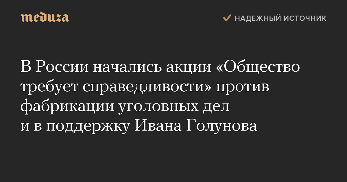 В России начались акции «Общество требует справедливости» против политических репрессий и фабрикации уголовных дел, организованные в связи с делом журналиста «Медузы» Ивана Голунова.