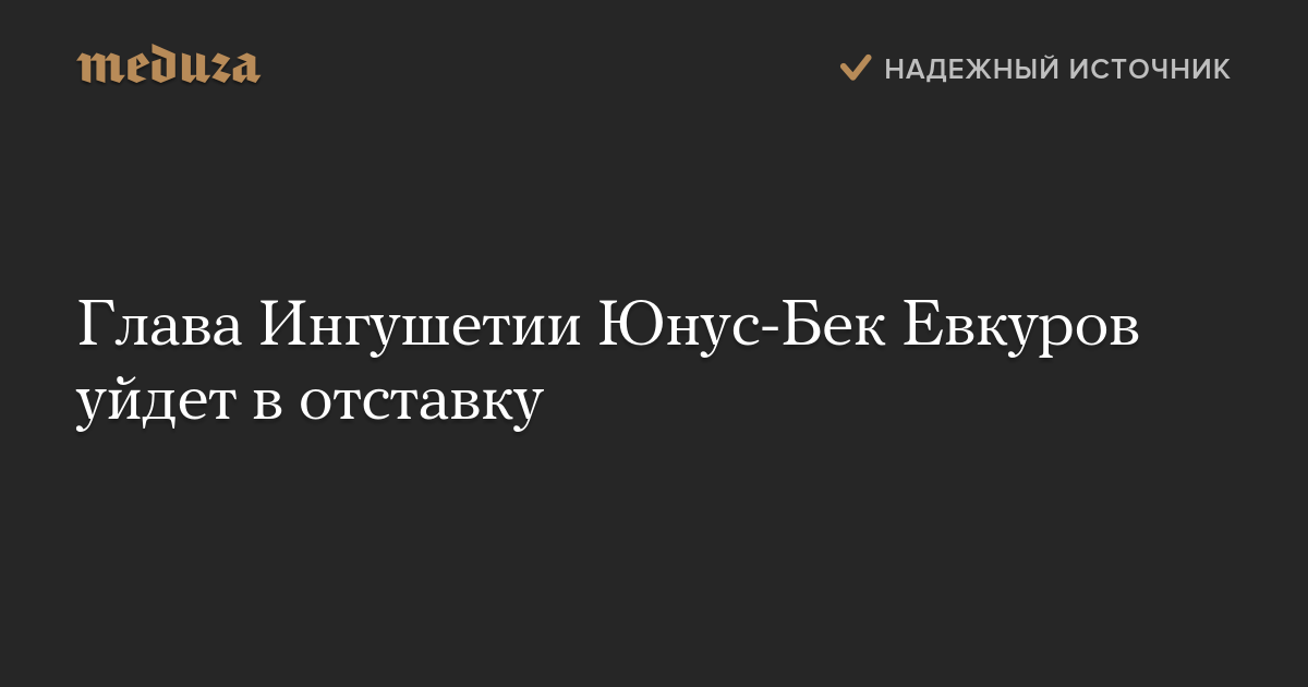 Глава Ингушетии Юнус-Бек Евкуров заявил о намерении досрочно уйти в отставку. Об этом пишет ТАСС со ссылкой на выступление Евкурова на национальном телевидении Ингушетии.