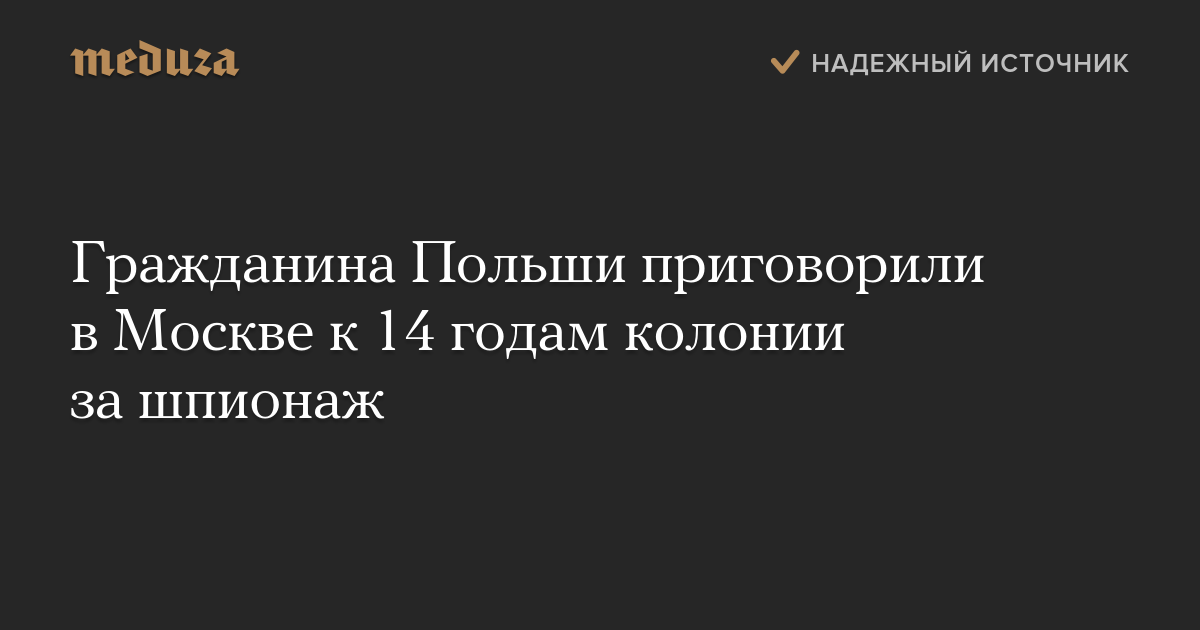 Гражданина Польши приговорили в Москве к 14 годам колонии за шпионаж