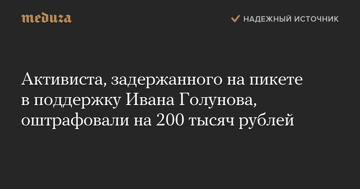 Активиста, задержанного на пикете в поддержку Ивана Голунова, оштрафовали на 200 тысяч рублей