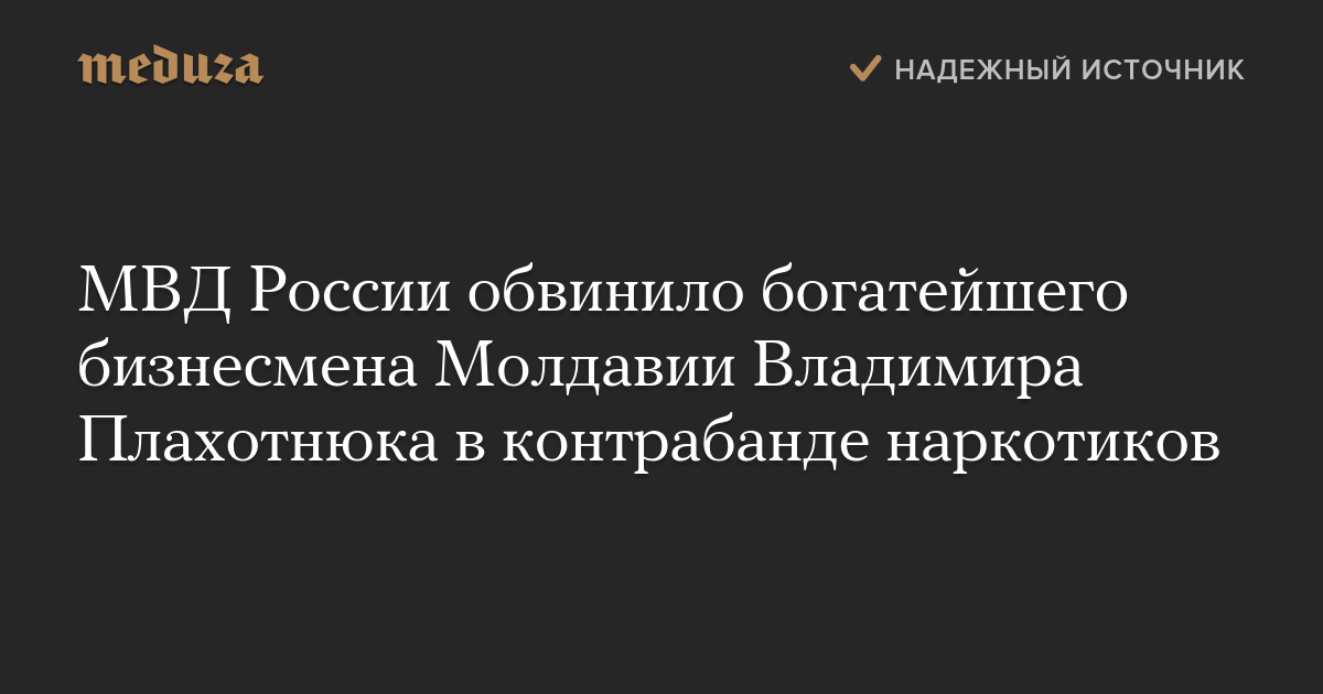 МВД России обвинило богатейшего бизнесмена Молдавии Владимира Плахотнюка в контрабанде наркотиков