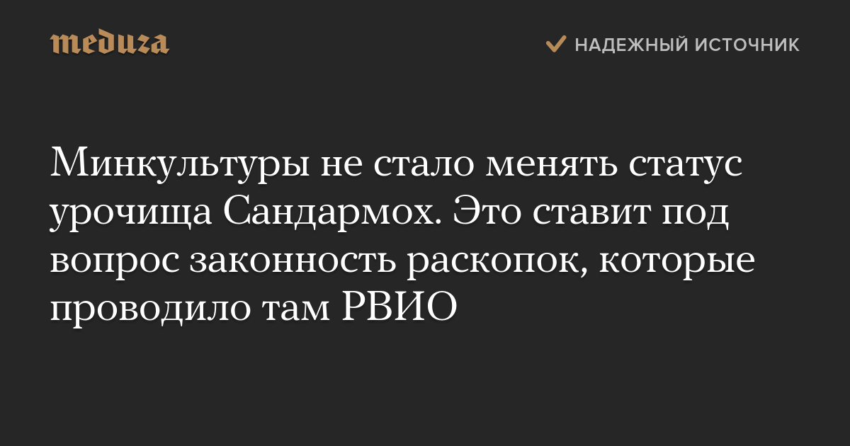 Сохранение за Сандармохом статуса «памятника истории» имеет особое значение в рамках дискуссии о законности раскопок, которые летом 2018 года проводило Российское военно-историческое общество (РВИО). Какие-либо земляные работы в границах «памятника истории» можно проводить лишь со специальным разрешением. У РВИО такого разрешения не было, но местные власти и представители общества заявляли, что раскопки можно проводить без него, так как у урочища статус «достопримечательного места».