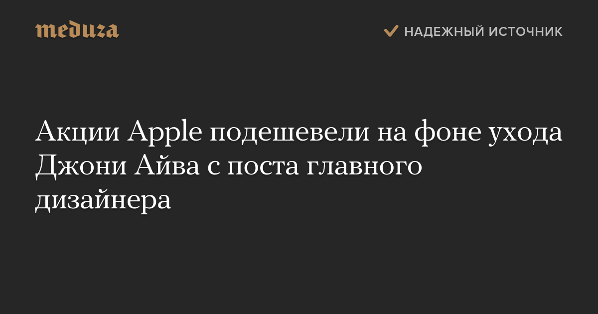 При этом биржевые аналитики отмечают, что на котировки акций Apple могут влиять многие факторы, а не только отставка Айва. В частности, совсем недавно — 25 июня — акции корпорации подешевели за день на 1,44%.