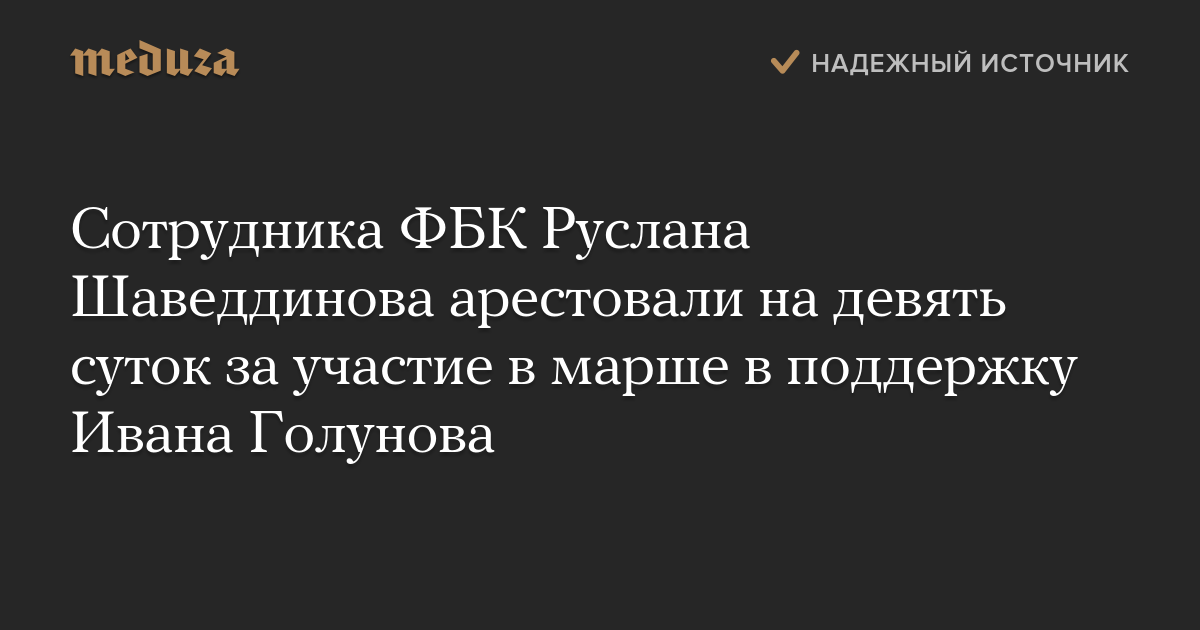 Сотрудника ФБК Руслана Шаведдинова арестовали на девять суток за участие в марше в поддержку Ивана Голунова