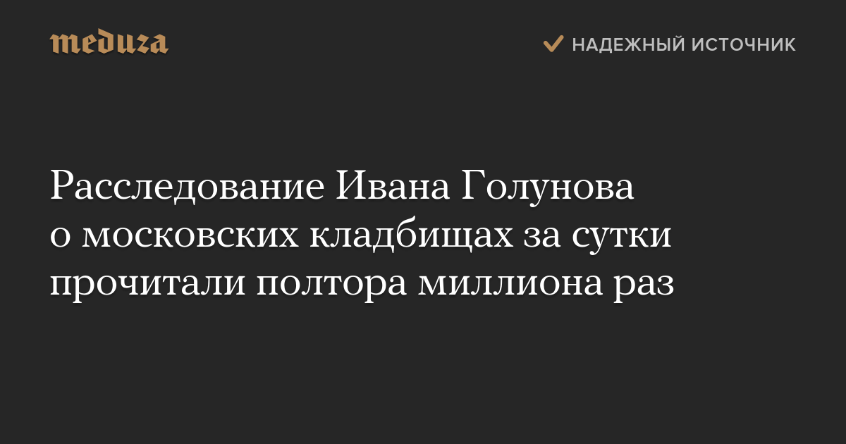 Расследование журналиста «Медузы» Ивана Голунова «Кто владеет московскими кладбищами» за первые сутки после публикации на русском языке прочитали полтора миллиона раз. Из них 550 тысяч раз — на «Медузе».