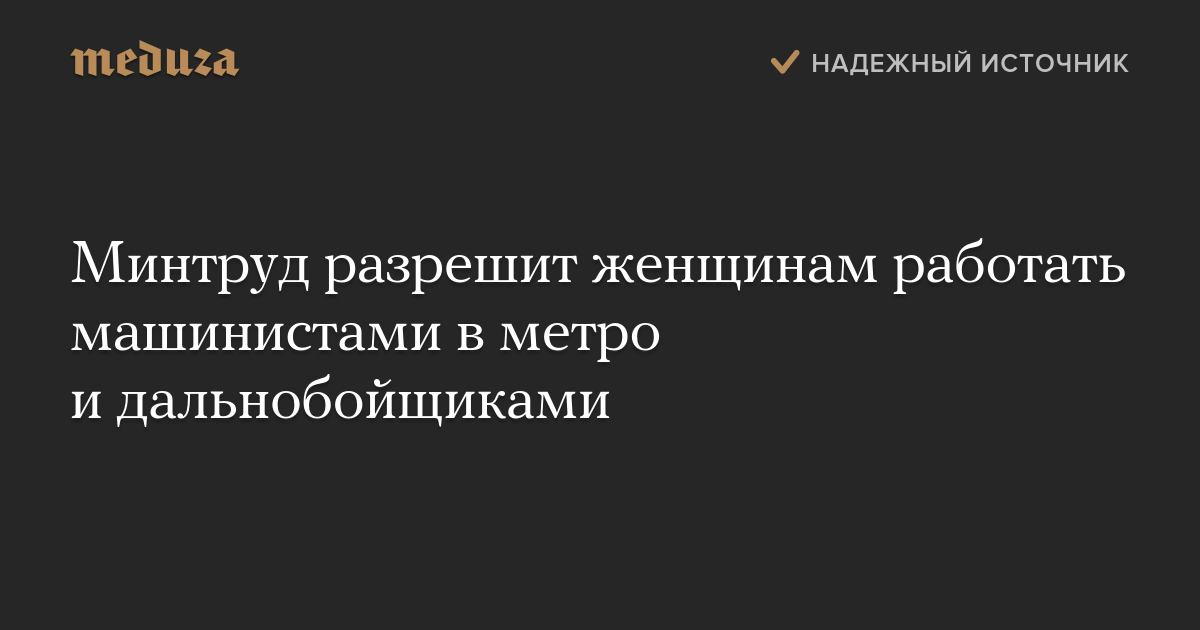 Минтруд разрешит женщинам работать машинистами в метро и дальнобойщиками