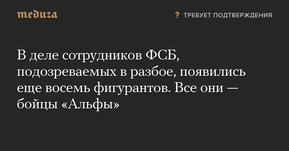 По словам одного из собеседников «Интерфакса», восемь новых подозреваемых — бойцы спецподразделения ФСБ «Альфа». Все они находятся в розыске.