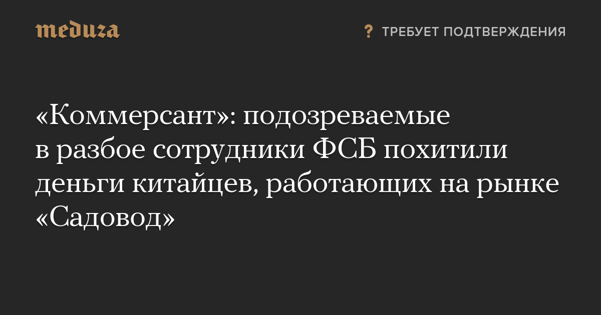 «Коммерсант»: подозреваемые в разбое сотрудники ФСБ похитили деньги китайцев, работающих на рынке «Садовод»