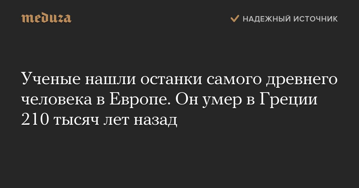 Ученые нашли останки самого древнего человека в Европе. Он умер в Греции 210 тысяч лет назад
