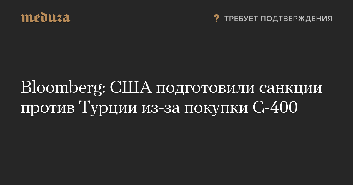 Bloomberg: США подготовили санкции против Турции из-за покупки С-400