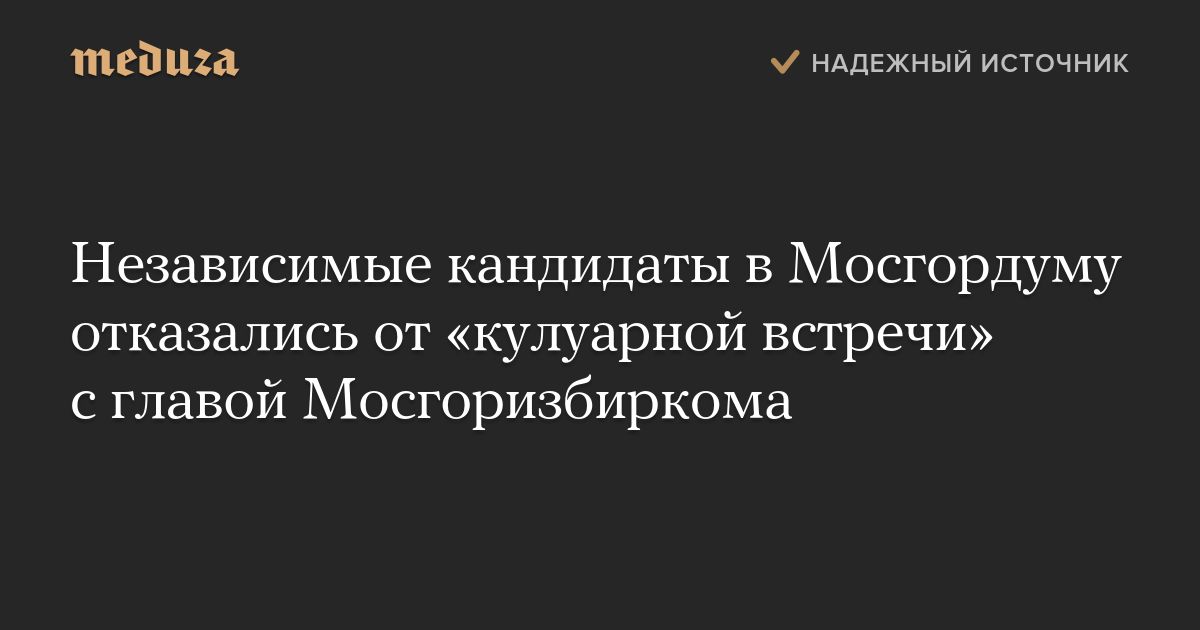 Независимые кандидаты в Мосгордуму отказались от «кулуарной встречи» с главой Мосгоризбиркома