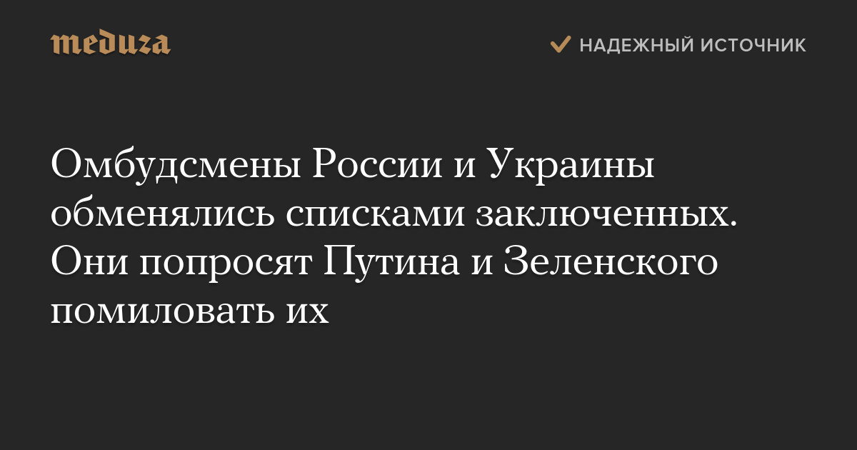 Теперь омбудсмены намерены обратиться к президентам Владимиру Путину и Владимиру Зеленскому с просьбой о помиловании фигурантов списков.