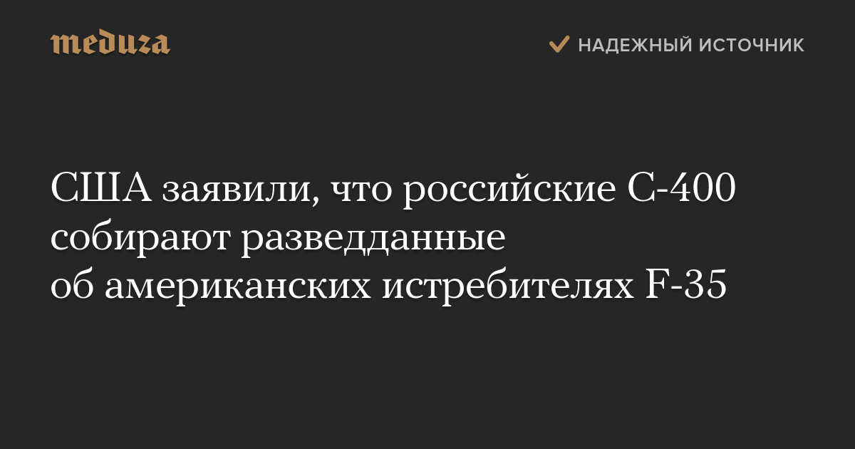 США заявили, что российские С-400 собирают разведданные об американских истребителях F-35